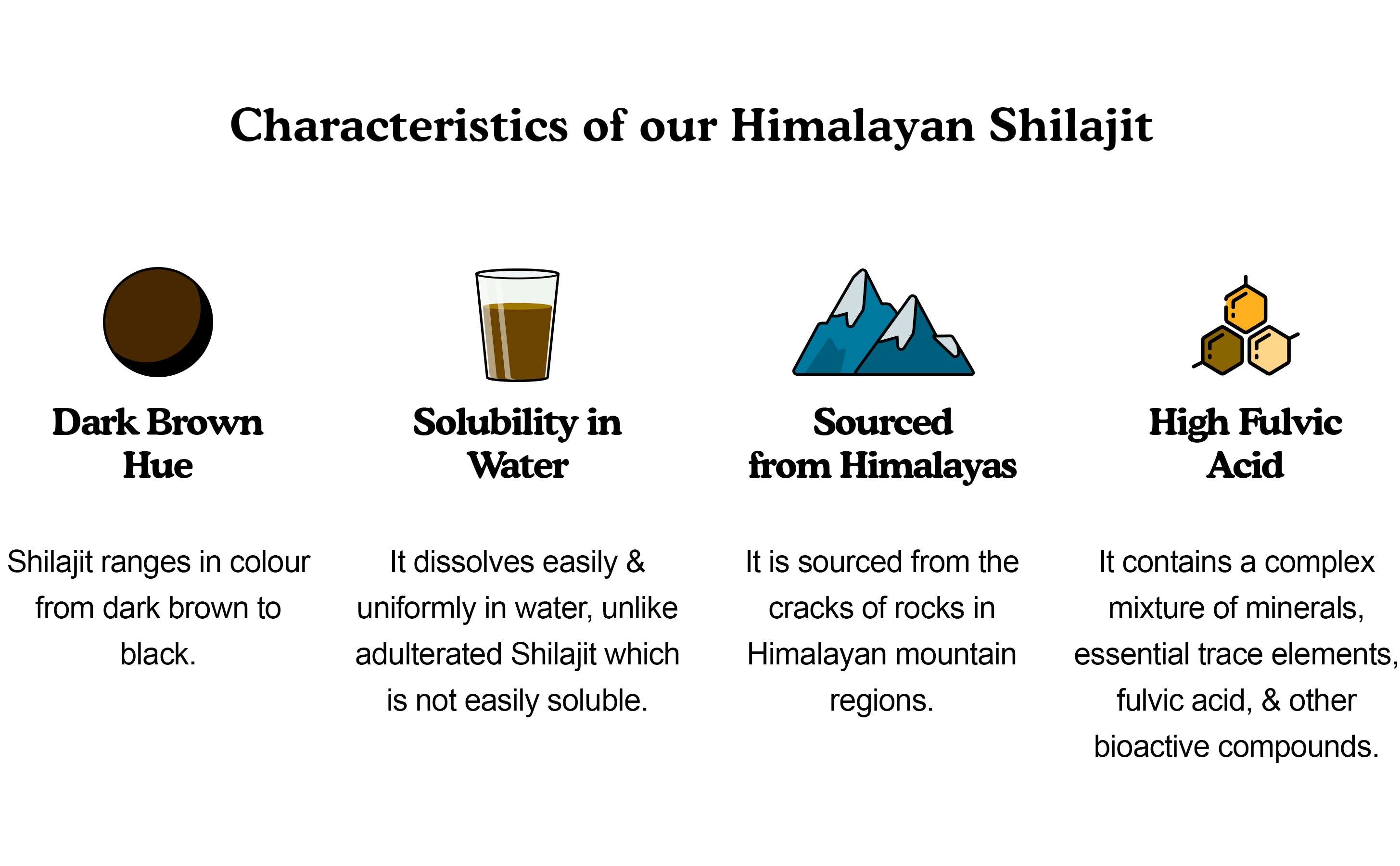 ✨ Our Himalayan Shilajit is sourced from the purest and highest quality resin. It is 100% pure and free from contaminants, ensuring you receive a safe and effective product. With no adulteration, you can trust our shilajit for daily use.